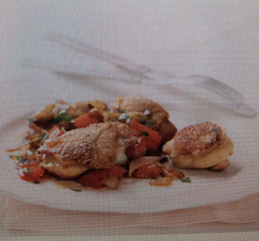Remove all chicken and sausage from the pan, add the garlic, and cook until golden, being careful not to burn it. Scatter the cherry