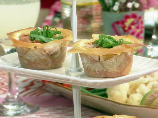 To assemble the cupcakes: Pull out your favorite cupcake pan. If your pan is not nonstick, spray the cups with cooking spray. Place a wonton wrapper in each cup. Don't worry if you're using square ones.