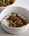 - Steamed rice, chopped cilantro and sliced scallions, for serving