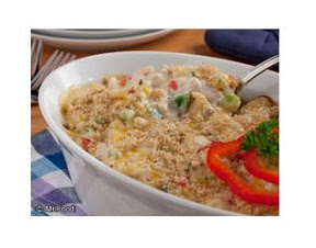 Preheat oven to 350 degrees F. Stir together pasta, cheese, and next 7 ingredients in a large bowl. Spoon into a lightly greased 7x11-inch baking dish.