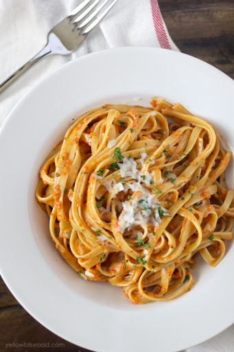 Roasted Garlic and Red Pepper Fettucine Alfredo
