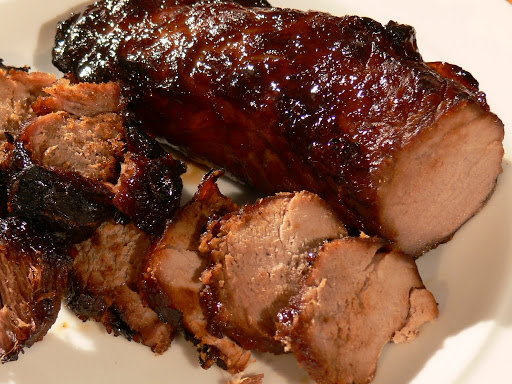 Bake pork in preheated oven for 30 to 35 minutes, or to desired doneness. Let stand for 10 minutes, and then slice diagonally into thin slices.