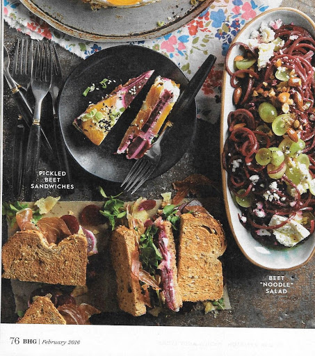 In a large bowl whisk 1/3 cup balsamic vinegar, 1/3 cup olive oil, 1/2 teaspoon kosher salt, and 1/2 teaspoon black pepper. Using a spiral vegetable slicer, cut 2 pounds raw peeled beets into spirals. Using kitchen shears, snip beet spirals a few times; add to bowl with dressing. Toss to coat. over. Chill at least 4 hours. To serve, top beets with 1 1/2 cups halved green grapes, 4 ounces ricotta salata, and 1/2 cup chopped toasted almonds.