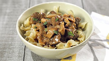 BEEF STROGANOFF WITH BUTTERED NOODLES
