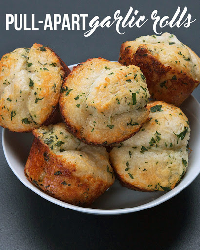 Cut biscuits into fourths, and place in a large mixing bowl. Add the butter, garlic powder, parsley, and mozzarella, and mix with your hands, coating all of the biscuit pieces. Place the pieces in a muffin tin, three pieces per tin (you’ll have two extra — just use them in whichever tin you want). Bake for 15 minutes. Best served fresh out of the oven!