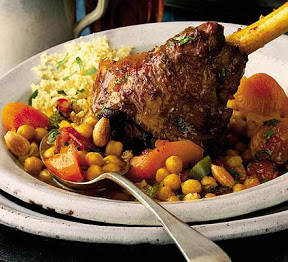 Remove from the oven and stir in the remaining spice mixture, the saffron and cinnamon, carrots, apricots, honey and salt. Cover and return to the oven for 45 minutes-1 hour until the lamb is tender and the vegetables cooked. Scatter the almonds and cilantro on top.