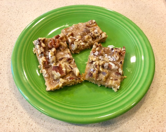 Incredibly easy 7-ingredient Toffee Bars recipe! Quick homemade caramel sauce and pecans make this a tasty treat!