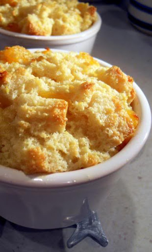 Gradually pour this over the egg mixture, whisking constantly until completely combined. Strain this thru a wire mesh sieve into a bowl. Gently stir in the brioche cubes and the drained apricots.
