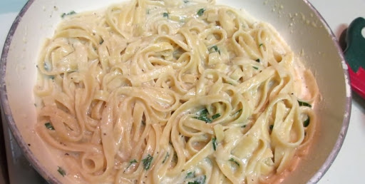 Heat oil. Add garlic and saute for about 1 minute. Add broth, milk butter and pasta.