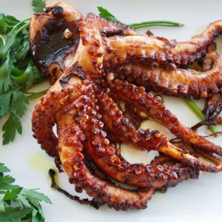 Although I find it easiest to grill my octopus whole and then cut it into pieces before serving, you can cut it before grilling if you prefer. I like a lot of lemon with my seafood, so I serve it with additional lemon wedges.