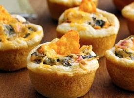 1. Heat oven to 375°F. Spray 30 mini muffin cups with Crisco® Original No-Stick Cooking Spray. In large bowl, mix spinach, tomatoes, cream cheese, sour cream and taco seasoning mix; set aside.