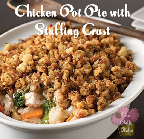 A yummy chicken pot pie that has a crunch stuffing crust instead of the usual pie crust.