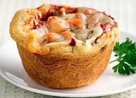 1. Heat oven to 350°F. Separate dough into 8 biscuits. Separate 2 biscuits into 3 layers each; add 1 layer to each of remaining 6 biscuits. In ungreased jumbo muffin pan, press each biscuit on bottom and up side of muffin cup.