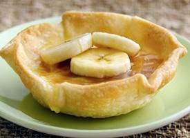 5. Place tart shells on cookie sheet. Pour cream mixture into tart shells. Sprinkle each with 1 rounded teaspoon of the candies. Bake about 5 minutes or until candy is melted. Remove tarts from cookie sheet to cooling rack; cool 30 minutes. Top tarts with bananas; serve warm or cooled. Store covered in refrigerator.