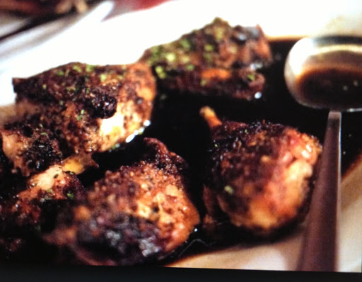 4. Remove skillet from oven; pour out fat. Add vinegar; spoon vinegar sauce over chicken. Transfer chicken to a platter and pour vinegar sauce over it.