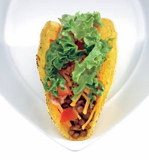 6. Spoon 1/4 cup lentil mixture into each taco shell. Top with 2 heaping tsp sour cream mixture, lettuce, tomato and cheese.