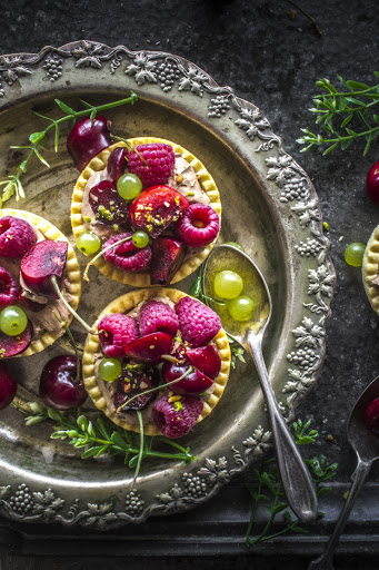 Fill up the tart shells by using a spoon or by piping the cream into it. Store in the fridge until ready to serve. Serve with berries, cherries and stone fruits. Sprinkle with nuts.