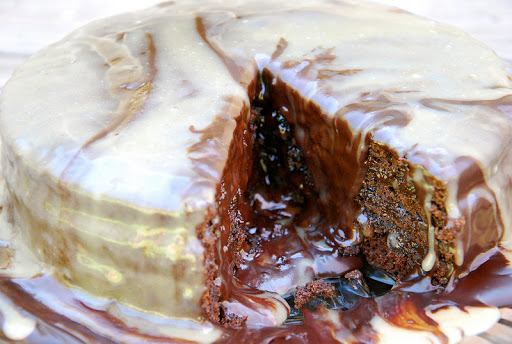 Let the cake and caramel cool for about 20 minutes, and while that's cooling, make the chocolate ganache (if desired).