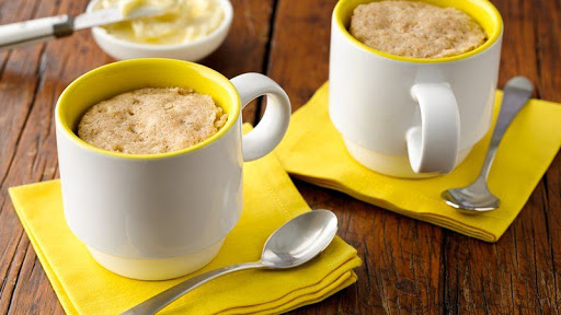 Divide batter equally into mugs (about 1/3 cup batter each). Microwave one at a time uncovered on High 45 to 60 seconds or until muffin top is set and edge pulls away from side of mug; let stand 1 minute before serving. Serve warm directly from mugs. If desired, serve with butter.