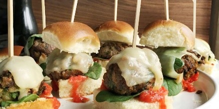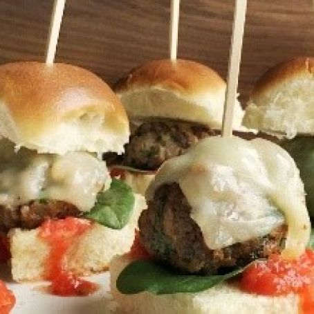 4. Serve meatballs on slider buns with tomato sauce, spinach, and meatballs.
