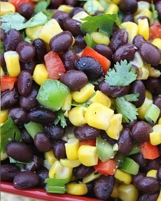 1. Place black beans, corn, garbanzo beans, peas, olives, pepper, onion, and jicama in a large bowl.