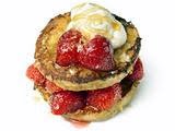 Preheat the oven to 350 degrees F. Whisk eggs, half-and-half or milk, nutmeg, vanilla extract, sugar and a salt in a shallow bowl. Heat 1/2 tablespoon butter in a nonstick skillet over medium heat. Add 4 split English muffins and soak, 5 minutes; and cook in the skillet until golden, 2 to 3 minutes per side, adding more butter as needed. Transfer to a baking sheet and bake until puffed, 8 to 10 minutes. Sandwich some strawberries and more lemon-sugar between the muffin halves. Top with yogurt, more berries and a drizzle of honey.