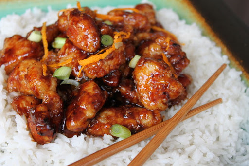 For the sauce, add the oil and sauté the garlic. Add the remaining ingredients and bring to a boil. Reduce for about 1 minute, then add a mixture of 1 Tbsp of cornstarch and 1 Tbsp cold water. Stir well as you are adding it, until thickened.