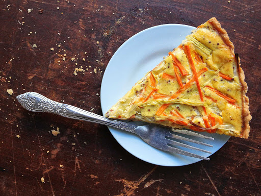Heat oven to 400°. On a lightly floured surface, roll dough into a 12-inch round. Fit into a 9-inch tart pan with a removable bottom. Trim edges chill 30 minutes. Using a fork, prick the dough all over. Line dough with parchment paper and fill with pie weights or dried beans. Bake for 20 minutes. Remove paper and weights and bake an additional 5 minutes, then cool.