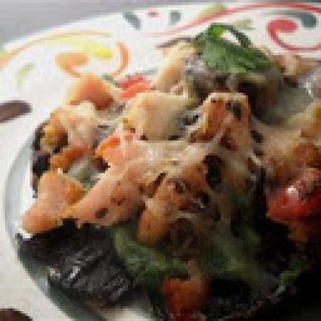 Coat portobello mushrooms with about 1/4 cup olive oil on both sides; arrange mushrooms gill-side up on a baking sheet.