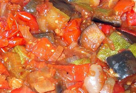 Sauté vegetables in 2 tbsp Kraft lite sun dried tomato and oregano dressing in a large ovenproof frying pan until tender. Add 1 can (19oz) stewed tomatoes. Cook about 15 minutes