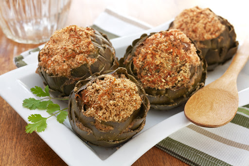 1. Combine bread crumbs, cheese, parsley, salt and pepper. Spread artichoke leaves and fill pockets generously with mixture until.
