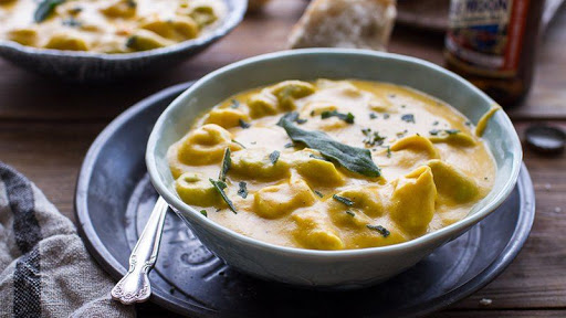 Slow Cooker Cheesy Butternut Squash and Tortellini Soup