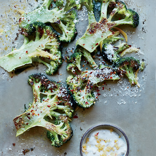 To make broccoli special, chef Laurent Tourondel cuts it into steaks and roasts it in the oven, then serves it with a cool and tangy yogurt sauce.