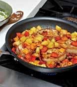 Add the remaining 1 tablespoon oil, 1 turn of the pan, to the skillet. Add the pineapple, bell peppers and chile and cook until crisp-tender and the pineapple is browning at the edges, 3 to 4 minutes. Transfer the peppers and pineapple to the pork plate. Lower the heat under the skillet to medium-high and add the remaining 1 cup chicken stock, the teriyaki sauce, lime juice, honey and ginger. Cook until reduced by about half, about 5 minutes. Add the pork mixture, lower the heat and simmer for 5 minutes. Serve with the scallion rice.