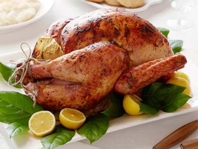 Roast the turkey about 2 1/2 hours, or until the juices run clear when you cut between the leg and the thigh. Remove the turkey to a cutting board and cover with aluminum foil; let rest for 20 minutes.