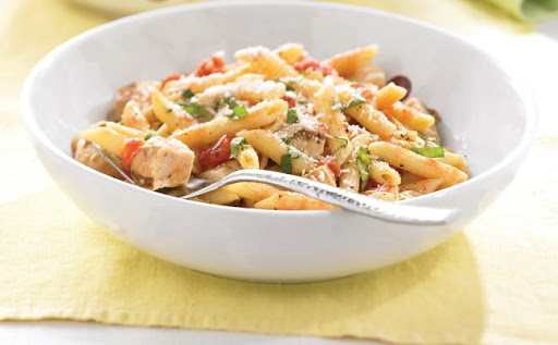 Any tube-shaped pasta requiring 9-11 minutes cook time, such as penne or rigatoni, can be substituted for the mezze penne pasta.