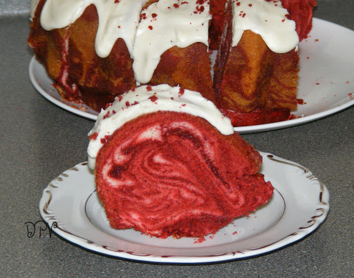 Red velvet and white cake mix batters are prepared separately as directed on packages then spooned alternately into a bundt pan to create stripes. You'll be amazed when you cut it! Pretty cake for Valentine's Day!