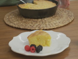 Prepare the Fleischmann's Simply Homemade Cornbread Mix according to the package directions using the butter, milk and egg.