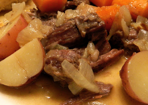 Seal and lock pressure cooker, and cook over high heat to build pressure until the indicator sounds (mine whistles). Turn heat down to medium, and cook for 45 minutes. Remove from heat and let stand for 5 minutes. Run under cold water to help release the pressure before unsealing the lid. You can use the juices as an au jus, or thicken with flour or cornstarch to make a yummy gravy.