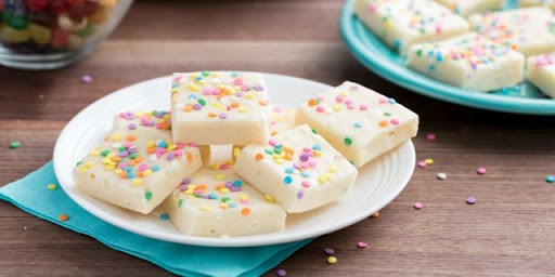 Fold in sprinkles, being careful not to stir too much (or the sprinkles’ coloring will melt into the fudge, creating a grayish tint).