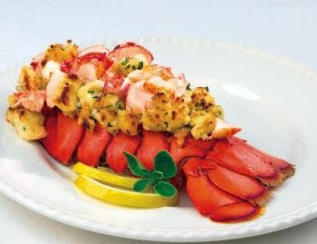 Divide Stuffing into 6 mounds on the cedar planks. Top each mound with a Lobster Tail.