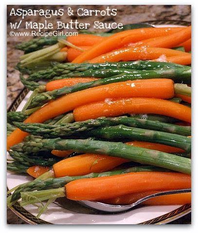 3. Add trimmed asparagus to the pan with the carrots. Pour maple butter over the carrots & asparagus; cover. Bring to a low simmer and cook until asparagus are crisp-tender.