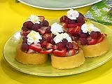 Arrange sponge cake on serving dish. Remove lid from lemon curd jar and heat in microwave 30 seconds on high to warm and loosen. Fill cakes with curd sauce. Top curd sauce with berries, whipped cream and lemon zest.