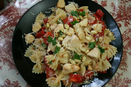 Pasta with Chicken, Sun-Dried Tomatoes, Gorgonzola and Pine Nuts