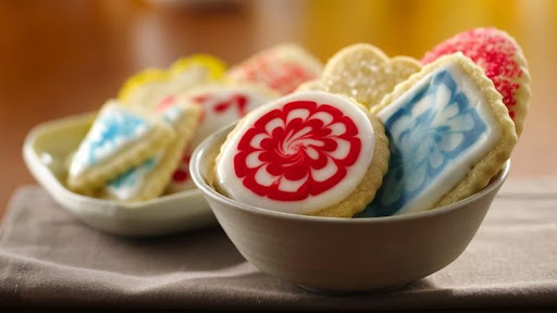 Divide dough in half. Roll each half 1/4 inch thick on lightly floured surface. Cut into desired shapes with 2- to 2 1/2-inch cookie cutters. Sprinkle with granulated sugar. Place on cookie sheet.