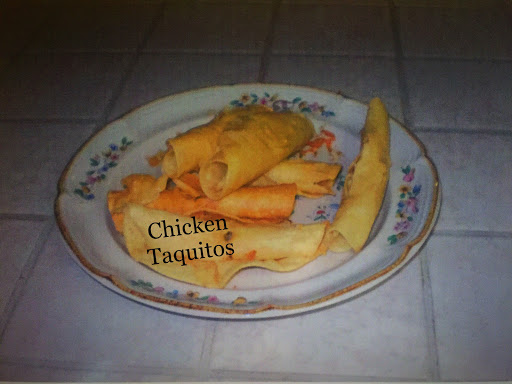 3. Add about 2 tbsp shredded chicken to a tortilla and wrap. Insert a toothpick