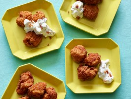 Cut the chicken into bite-size pieces. In a large bowl combine the buttermilk, hot sauce, and chicken. Cover and let marinate in refrigerator for at least 2 hours or up to overnight.