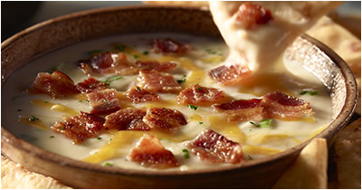 5. Once the cheese in the dip is fully melted and the dip begins to bubble, remove and top with the remaining bacon and cheddar jack cheese. Finish with chopped fresh parsley.