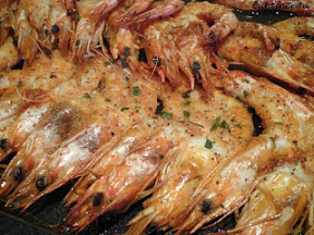 Disponer los langostinos artisticamente en una bandeja apta para horno, salpimentar, añadir ajo y perejil picados, 1 vaso de PX, un chorrito de aceite y meter al horno a unos 200º aproximadamente 10 minutos.