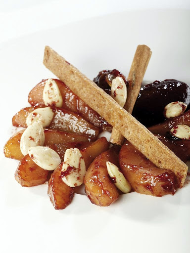 Cook the pears, almonds and olive oil in the ActiFry for 6 to 7 minutes.